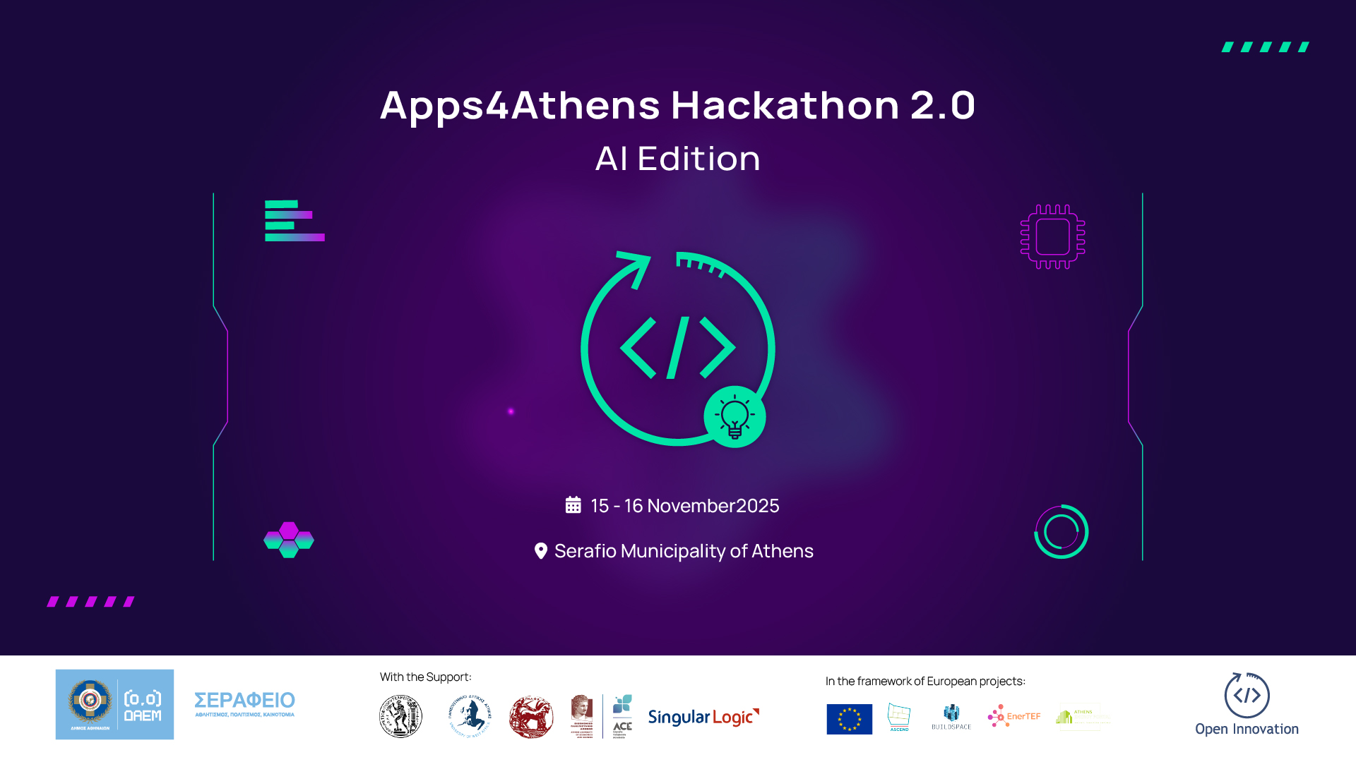 - Apps4Athens Hackathon 2.0: AI Edition: https://apps4athens.gr/ai