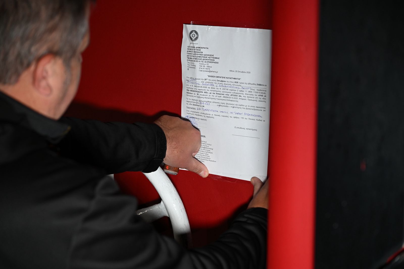 Η Δημοτική Αστυνομία του Δήμου Αθηναίων επέδωσε σήμερα, στις 8 το βράδυ, την απόφαση για τη σφράγιση του καταστήματος και προχώρησε σε όλες τις προβλεπόμενες από τον νόμο διαδικασίες.