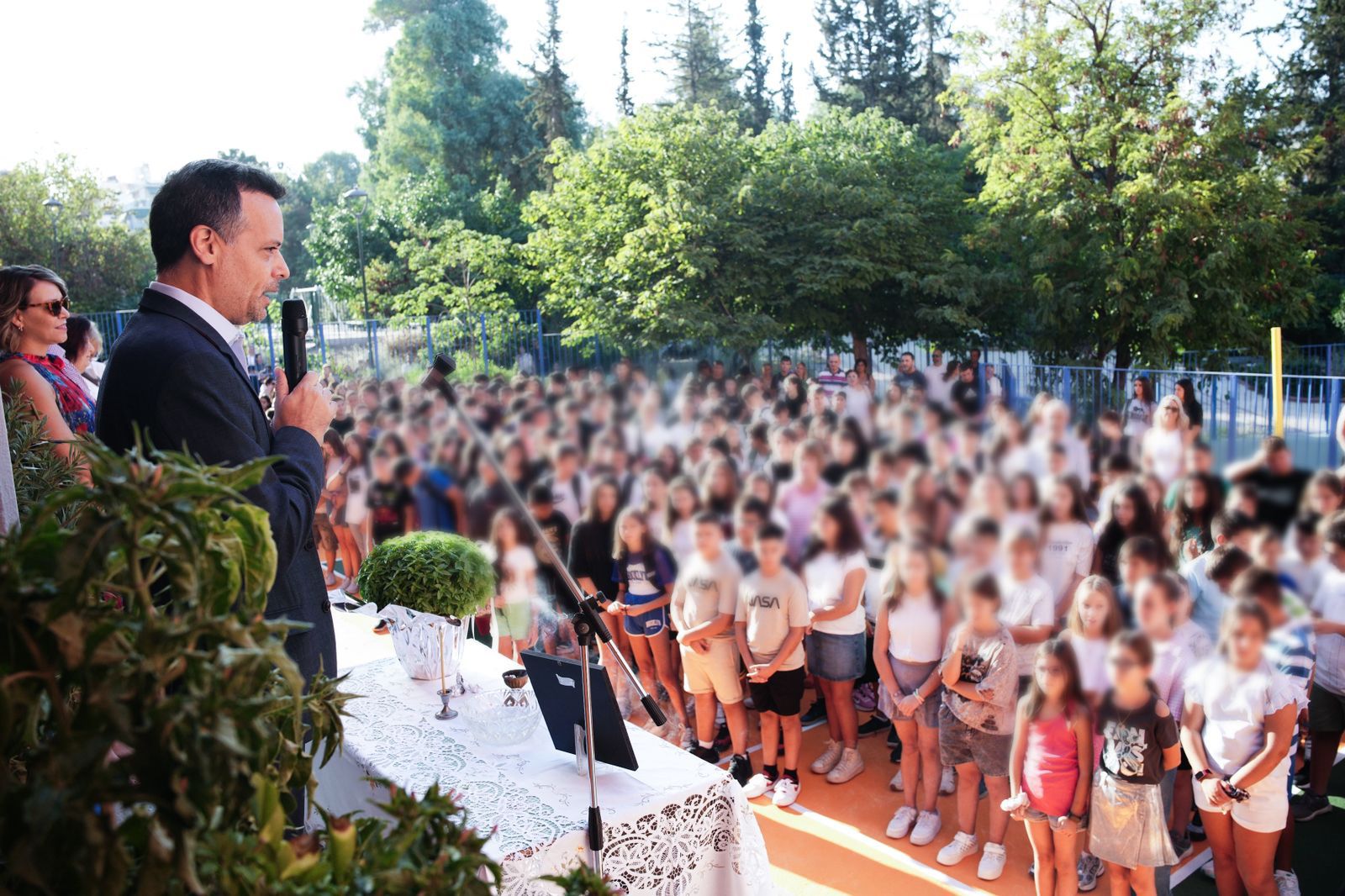 Το πρώτο κουδούνι της νέας σχολικής χρονιάς βρήκε φέτος εκατοντάδες μαθητές και εκπαιδευτικούς σε αναβαθμισμένα σχολεία της Αθήνας, χάρη στις εκτεταμένες εργασίες συντήρησης και αποκατάστασης από τον Δήμο Αθηναίων. Ευχές για καλή σχολική χρονιά εξέφρασε ο Δήμαρχος Αθηναίων, Χάρης Δούκας, ο οποίος παραβρέθηκε στην τελετή αγιασμού στο 111ο Δημοτικό Σχολείο Αθήνας, καθώς και στο 46ο Γενικό Λύκειο Αθήνας.
